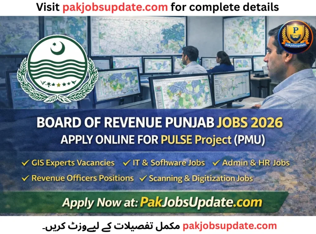 The Board of Revenue Punjab Jobs 2026 Apply Online for PULSE Project (PMU) is such a great chance for Fresh Bachelor’s degree jobs in Pakistan and Punjab Government Careers. Backed by competitive salaries, career growth, and the opportunity to work in major development projects, these jobs are most recommended.